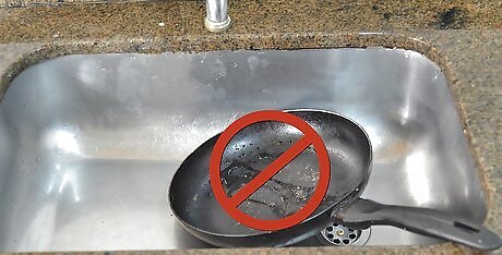 Do not leave cast iron cookware in a stainless steel sink. Cast iron cookware produces a lot of residue that can wear down stainless steel. If left in a stainless steel sink, this can cause the sink to rust and stain. It's also not good for cast iron cookware to be left wet for long, as this can cause the cookware to rust as well.