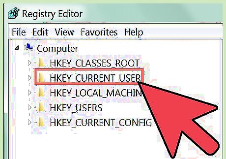 Double-Click HKEY_CURRENT_USER. On the left side of the Registry Editor window, you should see a list of folders all starting with "HKEY." Double-clicking the HKEY_CURRENT_USER folder will open up its contents, known in the Registry as its tree.