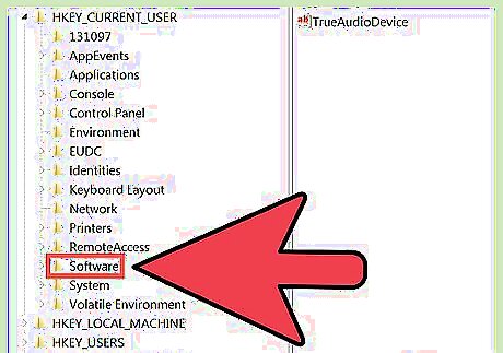 Double-click on the Software folder. Within the HKEY_CURRENT_USER folder, you should see a folder titled "Software." Double-click on this folder to reveal its tree. If you have trouble finding this folder, try clicking the 's' key to go through all items in the folder starting with the letter 's'. Keep on clicking until you see the Software folder.