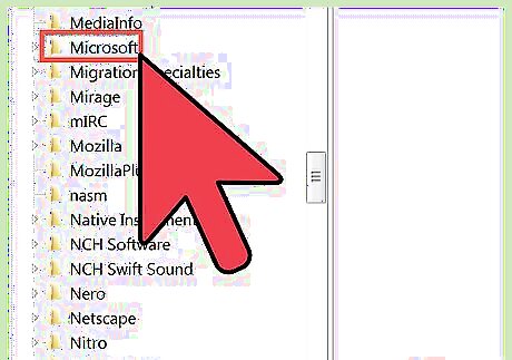 Double-click on the Microsoft folder. Within the Software folder, you should see a folder titled "Microsoft." Double-click this folder to reveal its tree.