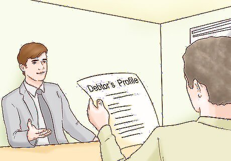 Settle for less than the full amount. The debtor might have no money, and if they declare bankruptcy you'll probably be completely wiped out. In that situation, you should consider settling the debt for less than the full amount. You might have to negotiate. The debtor will want to pay as little as possible, but try to get them to pay at least 50% of what they owe. Demand a lump sum payment in cash. Feel out how financially stable the debtor is. Do they have a job? Do they have other debt payments, such as car payments?
