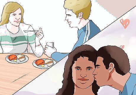 Show affection regularly. Physical communication is just as important as verbal communication. Show your partner you care by expressing love through physical affection. Do small things throughout the day. Hold your partner's hand. Kiss your partner on occasion. When the two of you are watching television together, do not hesitate to spoon your partner. Perform random acts of service. For example, you could do the dishes or make the bed if these are things that your spouse usually does. This is a good way to show affection for your spouse.