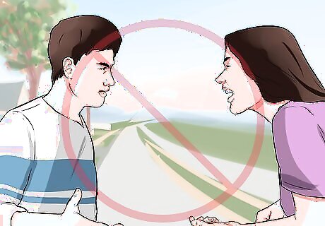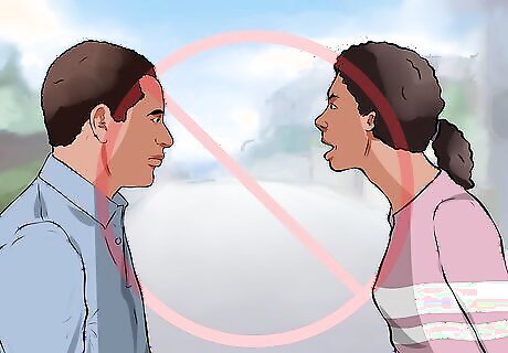 Refrain from yelling. Yelling is never an effective means to communicate. In frustration, your voice may rise. You may think yelling adds passion and clarity, but in reality it just creates a tense situation. You set your partner up to be defensive rather than receptive. Be aware of the tone of your voice. Remember, your words should speak volumes and not your tone. Just because you're expressing anger or frustration does not mean you have to do so loudly. Remember, you can always take a break. Try to do some exercise, like go for a walk. This can release tension and decrease the sense you need to yell. Don't call your spouse names either. This can be hurtful and it is not an effective way to communicate.
