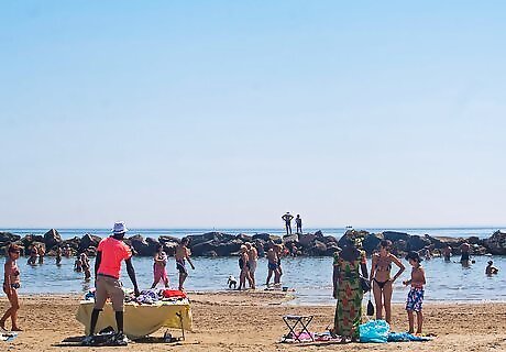 Do not clutter your photo. Anything involving a scene, such as a beach scene, can be all too easy to clutter, especially if you're a novice at composition. This scene has a lot of potential. The beach is obviously the center of interest but the white building in the upper left corner and the other building draws attention away from the beach. Crop this type of distraction by including just a portion of the white building. Notice the simplicity of professional photos and frames of scenes in well made movies, and imitate this simplicity in your photos. Learn from the graphic design of products like beer ads. When composing your photo, think how a professional photographer would take the picture, and take your photo like a professional photographer. Move a bit, move a lot and use the different setting in your camera to arrange the elements in your photo.