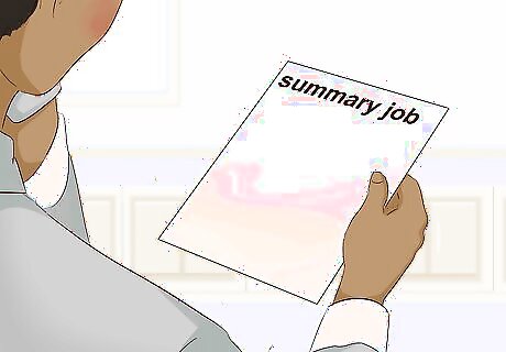 Read a summary of the job. Since the applicant has probably already read a very brief explanation of the available position, read a longer summary of the job. The summary should explain responsibilities of the job, expectations for time commitment, any travel requirements, and technical or skill expectations. For example, you might inform the applicant about specific computer or social skills that are needed for the job. Be as specific as possible. Consider spending 1 to 2 minutes discussing the company's background and mission.