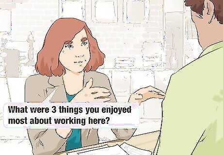 Ask the employee what they enjoyed most about their job. It’s just as important to learn what your company is doing right as it is to learn what the organization is doing wrong. Asking about the employee’s positive experiences is also a good way to inject some positivity into the exit interview. A good way to phrase this question might be: “What were 3 things you enjoyed most about working here?”