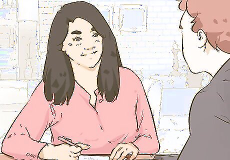Remember to smile and make eye contact with the employee. Look them in the eyes both as they’re talking and as you’re talking to them. However, avoid staring them down, as this can cause them to feel uncomfortable or like you’re trying to intimidate them. For best results, maintain eye contact for most of the interview, but blink and look away periodically to avoid staring at them. By maintaining eye contact and a happy demeanor, you’ll let the employee know that you’re interested in what they have to say, which will make them feel more comfortable about opening up to you.