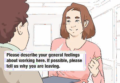 Remind them periodically that they’re not required to answer. Exit interviews are not legally required nor are employees obligated to participate in them, unless this is included in their contract. Moreover, if the employee is leaving the company on bad terms, pointing out that they’re not required to answer if they don’t want to will help prevent a potentially hostile interview.