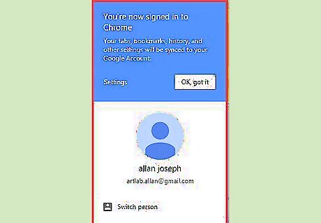 Sign in with the account you want to add. You can sign in with the Google account you want to add to Chrome. A new Chrome window will appear with the user's name in the upper-right corner.