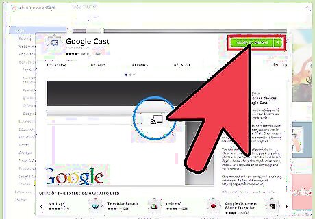 Click the "Start Using Chromecast" button. This will open a Google Chrome tab that allows you to install the Google Cast extension. Follow the prompts to install the extension in Chrome. If you setup your Chromecast through your phone or tablet, you'll need to install the Google Cast extension on your computer manually by visiting the Chrome Web Store. You can open the Chrome Web Store by clicking the Chrome Menu button, selecting "More tools" → "Extensions", and then clicking "Get more extensions" at the bottom of the list.