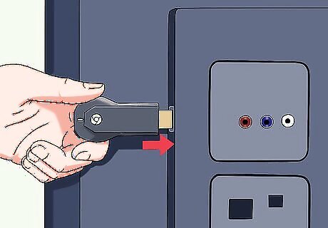 Connect your Chromecast to the display you want to use it with. Before installing the Chromecast software on your computer, connect the Chromecast to the device you want to use it with. If the Chromecast doesn't fit in your TV's HDMI port, use the HDMI extender that came with it. Make sure that the Chromecast is plugged into a power source as well.