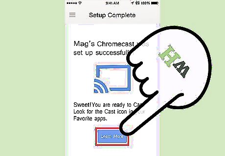 Run the app and follow the prompts to setup your Chromecast. You'll have to do this once, and then you can connect any device. Start the app and select "Set Up a New Chromecast" Allow the app to connect to your new Chromecast. Ensure that the code on the TV and in the setup program match. Set up the wireless network settings for your Chromecast.