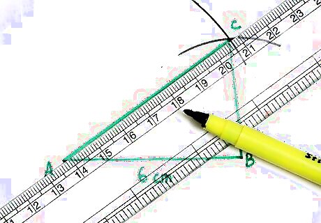 Say you need to construct a triangle having side lengths 6 centimeter (2.4 in), 7 centimeter (2.8 in) and 4 centimeter (1.6 in).