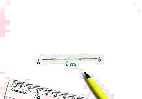 Draw a line segment measuring one of the given side lengths of the triangle. Let's draw the side having length 6 centimeter (2.4 in) and mark its end points as A and B. Use a ruler to carry out this step.