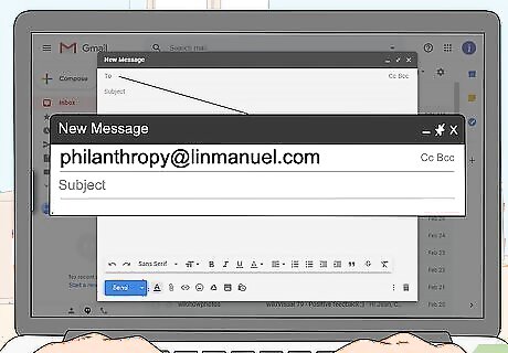 Try to reach him through the Rockefeller Foundation. Miranda is also a member of the Rockefeller Foundation, a charity organization. For another possibility of contacting him indirectly, write or call the organization to see if they can contact him on your behalf. Since Miranda lives in New York City, the Rockefeller Foundation’s office there is the best choice to reach him. The number for this office is (212) 869-8500. Since the Rockefeller Foundation is a charity, contacting him with a philanthropic opportunity increases the chances that they’ll contact him for you.