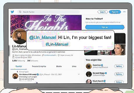 Comment on his Facebook page to see if he notices you. Lin-Manuel has a Facebook page where he shares updates about his upcoming projects. Like and follow the page for updates, and become an active commenter on the page. Over time, you might get his attention and get him to contact you. Lin-Manuel’s Facebook page is https://www.facebook.com/Lin-Manuel-Miranda-156195014444203/. Lin-Manuel’s messenger is disabled on his Facebook page, so you can’t contact him directly like this.