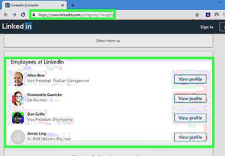 Connect with LinkedIn employees and send them direct messages. If you know the names or departments of the people you want to contact, you can try to reach them directly through LinkedIn’s connections interface. Begin at LinkedIn’s company profile page by typing this address into your browser’s address bar: https://www.linkedin.com/company/linkedin/. Then, click the link in the middle-right of the page that allows you to see all the LinkedIn employees. You can connect with specific people and if they accept your request to make a connection, you’ll have the ability to directly message through LinkedIn’s messaging service. Don't attempt to connect with LinkedIn employees that you do not know. If you send them messages to get your customer service issue resolved, you will probably get your LinkedIn account suspend for violating the website's Terms of Use. Use this method only if you are trying to reach a specific individual.
