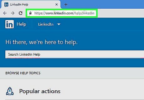 Access LinkedIn’s help center through their website. To find answers related to your issue or to submit a message to ask a specific question, you have to start by visiting LinkedIn’s help center. To access, type https://www.linkedin.com/help/linkedin in your browser’s address bar. This will direct you to the help center whether or not you are logged in to LinkedIn. If you are logged in, you can also access online help by clicking on “Me” in the upper right corner of your LinkedIn page and choosing “Open Quick Help.”