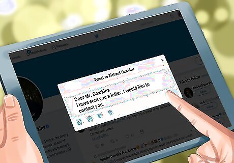 Let him know you have mailed him a letter on Twitter. Tweet at him once you put the letter in the mail to reaffirm the interest you have in contacting him. Dawkins updates his Twitter regularly, so he may see in his notifications you have reached out to him. Dawkins and his team will sometimes publish the letters they receive on the Mailbox page of their website.