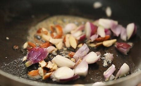 Heat 1 tbsp. (14.7 ml) of butter in a frying pan. Turn your burner to medium high. You can also use 1 tbsp. of olive oil or a mix of butter and olive oil. For an Asian cuisine flavor, try a small portion of sesame oil in place of some of the olive oil. Use garlic in place of the shallot. Opt for pine nuts in place of almonds.