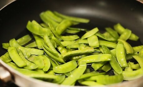 Slice a medium shallot. Add the shallot to the pan, along with 1/2 lb. (0.23 kg) of snow peas.