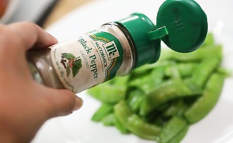 Season your peas with salt and pepper. Serve them immediately.