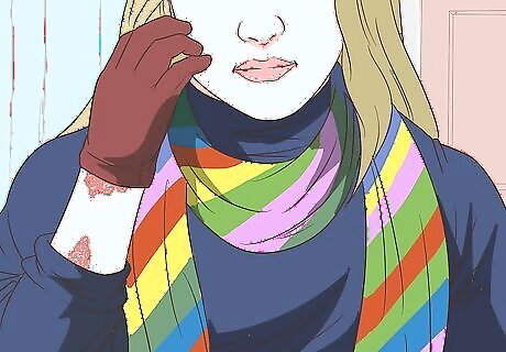 Wear clothes that cover your plaques. If you feel particularly self-conscious one day, simply cover up whatever problem areas you can. Wear long-sleeved shirts, pants, or long skirts to cover your neck, arms, and legs. Use a colorful scarf or accessorize with gloves if you have plaques on your hands or neck.