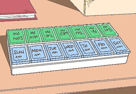Keep a pill organizer at work. If you take multiple medications, keep a pill organizer at your desk, in your briefcase, or in your car. This can help you stay organized and remember to take your pills throughout the day. Be sure to include an over-the-counter or prescribed pain medication to take if you have uncomfortable flare-ups. Keep your medications in a safe location that others cannot access, especially if you work with children.