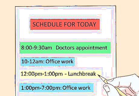 Minimize how much work you miss. Whenever possible, schedule doctor appointments for first thing in the morning or late in the afternoon. This helps minimize how much time you have to take off work, and shows your employer that you’re doing your best to be productive. If you have multiple appointments due, try to schedule them on the same day. Take that day off, and you won’t have to miss other working hours.