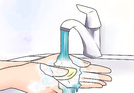 Wash your hands thoroughly with antibacterial soap and clean water. This will prevent the transmission of harmful microorganisms into the wound.