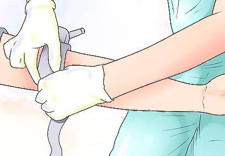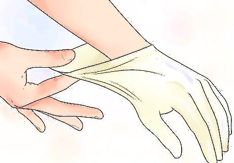 Put the sterile gloves on. Doing this will prevent the transmission of harmful microorganisms by creating a physical barrier between your hands and the surface or any fluids it comes in contact with.