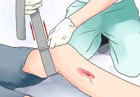 For slight injuries or bleeding, apply pressure to the wound and a bandage before using a tourniquet. If the bleeding does not stop, place a bandage on the wound. If it still does not stop, then you may use a tourniquet.