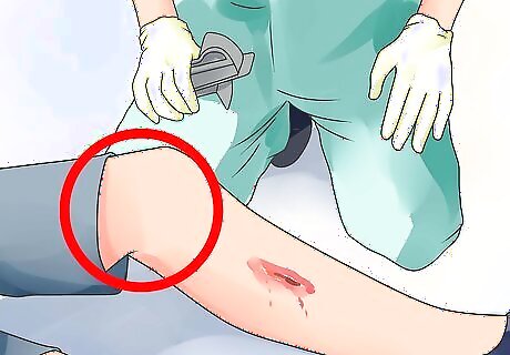 Use the scissors to cut around any of the person’s clothing to expose the wound. You want to make sure you can see all of the wound so you know the extent of their injury.