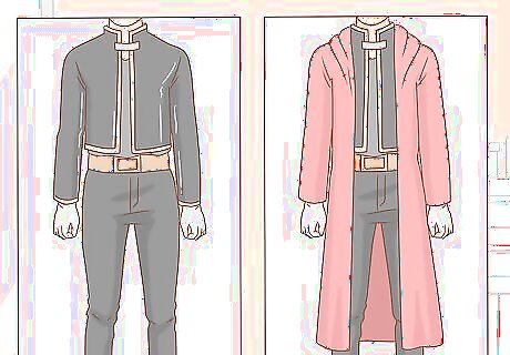 Clothing. Ed usually wears relatively tight, shiny black pants. Try leather, or satin. Both work, but satin is easier to move around in. He also wears a black tank top and a shiny jacket, as well as a large belt around the belly button area. It's suggested you make his one of a kind red coat yourself since online shops can make them look cheesy. Look up pictures of the coat and start drawing patterns to help you with the designing. Also, if you feel like being particularly accurate, get white dress gloves. You can usually find such gloves at costume stores, dress clothing stores etc. And, when you're done, you can re-purpose them into normal wear gloves, or even (with a bit of sewing, or even a red marker) into gloves for cosplaying as Mustang.