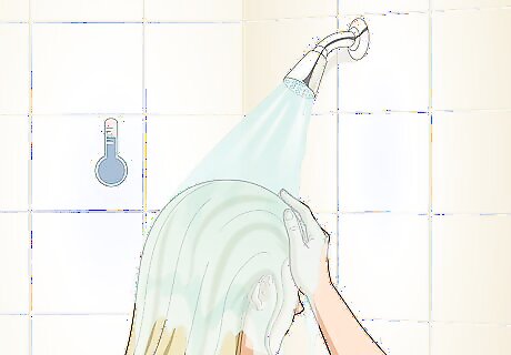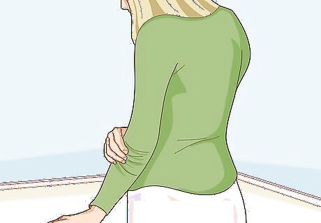 Wear a long-sleeved shirt to cover a sunburned back and shoulders. Natural fabrics, like cotton, are breathable and lightweight, so they won’t trap heat against your burned skin. A long-sleeved cotton top will keep your arms, back, and shoulders covered and protected. Avoid tight fabrics like Spandex, which can trap heat close to your skin and put too much pressure on the burns. Wear light-colored fabrics and avoid dark colors that attract heat. Look for sun protective fabrics that protect your skin from UV rays for additional protection outdoors. Sun-protective clothes will have a special label, so look for that when you’re shopping.