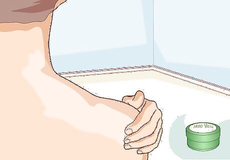 Keep the skin moist with a soy- or aloe-based lotion. Apply moisturizer to damp, clean skin at least once per day to sooth and hydrate your sunburn. You can also apply a topical cortisone cream directly to the affected area for pain relief. However, avoid creams that contain benzocaine or lidocaine.