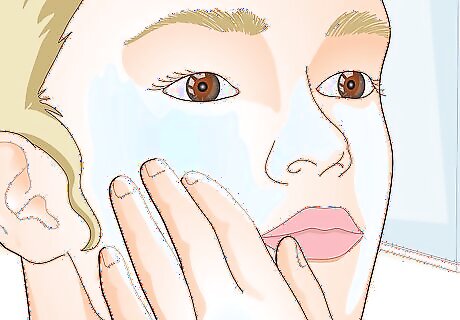 Smooth moisturizer that contains aloe or soy all over your face. Gently splash your face with cool water to clean and soothe the skin. Pat your face with a soft towel but don't completely dry the skin. Then, apply a generous amount of moisturizer all over your face and give it a few minutes to soak in. You'll reap more benefits if you apply moisturizer to damp skin. Avoid petroleum and oil-based moisturizers. These can trap heat close to your skin and make your sunburn worse. Use a moisturizer with SPF 30 during the day to prevent additional skin damage.