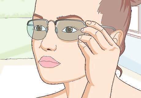 Cover the area around your eyes with UV protective sunglasses. Large sunglasses with UV protection can protect the sensitive skin around your eye area and help to disguise a sunburn on your face. Check the lenses for a special label that says the sunglasses protect against UV rays before buying a new pair of sunglasses.