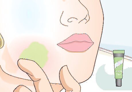 Apply a green color-correcting primer to your face to neutralize redness. Gently smooth a sheer, green-tinted primer all over your face with your fingertips to even out your skin tone and conceal redness. Primer also gives your makeup something to stick to and helps it last longer.Tip: Select lightweight and gentle makeup formulas to prevent additional skin irritation. Avoid products with fragrance, alcohol, dyes, oil, and parabens.