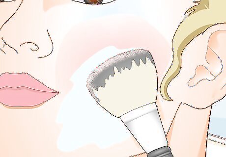 Use a clean, fluffy brush to apply tinted mineral powder, if desired. Tinted powder is simply powder that is flesh-colored rather than translucent. Swirl a large, fluffy makeup brush, like a kabuki brush, into loose or pressed powder. If your face is oily or shiny, gently dust the powder all over your face. Otherwise, focus your application only on the reddest areas. Mineral powders are the best options for red, sensitive skin. A yellow-toned powder can help to cover up any redness that's still peeking through.Tip: You can use these makeup tricks on other small areas of your body, like your shoulders or the tops of your feet. Avoid putting makeup on large areas of your body, like your back or legs.