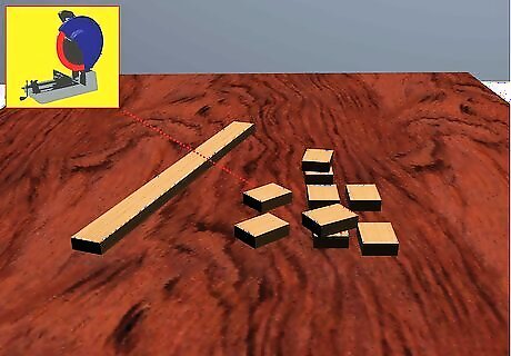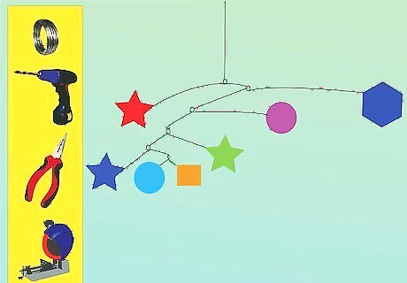 Cut out the wood pieces using a jigsaw or chop saw. For a first mobile, it is good to start with simple square wood pieces measured 2" x 3". Cut out 9 pieces. For advanced mobiles, you can use all kinds of varied shapes—use your imagination!