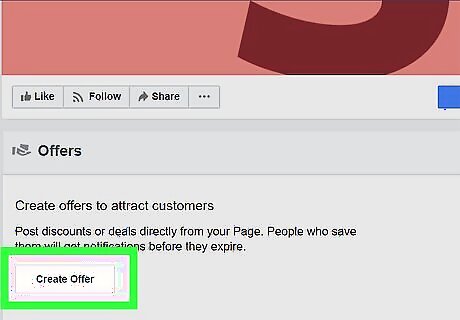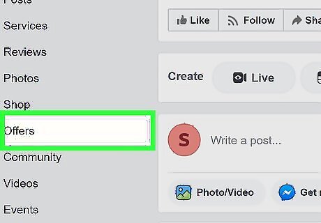 Click Offers. You'll see this in the menu on the left side of the page under "Home." If you don't see this option, you might need to click See More first. If Offers still isn't visible, you might need to add it to your tabs. Click Settings at the top of your Page, then select Templates and Tabs in the menu on the left side. Click Add a Tab at the bottom of the page and then Add Tab next to"Offers."