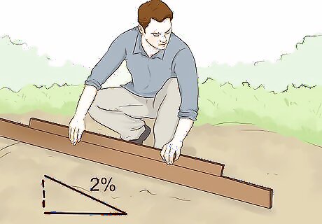 Measure your area's slope. Using a long, straight wooden board and a carpenter's level, measure the slope of your projected area. To get enough rain water into your garden, you'll need a slope of at least 1 inch (2.54 centimeters) in 4-1/2 feet (1.32 meters), or 2%. Without this natural slope, you'll have to create it naturally by digging. Because rain gardens protect your yard from water overflow, you will want a slope of two percent or more.
