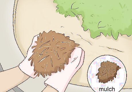 Add mulch to your garden for the first two years. Mulch will keep the soil moist and helps nurture your plants while they adjust to the soil. Heavier mulches (like gorilla hair mulch and shredded wood or rock) are preferable in rain gardens to prevent them from floating away. A 2-3 inch (5-7.6 centimeters) layer covering the topsoil is preferred. After the second year, mulching is unnecessary but can be continued for aesthetic purposes.