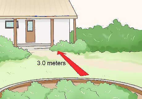 Position your garden at least 10 feet (3.0 meters) from your home. If your garden is too close to the house, water may erode at the home's foundation. This can cause basement flooding or structural problems. Keep your rain garden away from driveways and sidewalks as well to avoid pathway erosion. Watch your yard's rainfall draining pattern during a storm. Try positioning your garden near where runoff naturally flows.