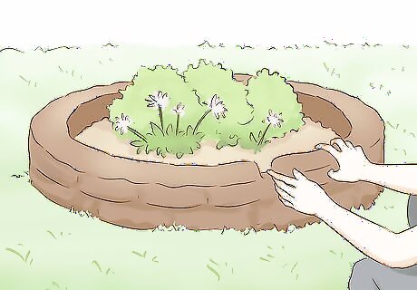 Build a berm to hold in water. A berm (or earthen dam) will prevent runoff from flowing out of your garden. Use leftover soil from digging to pack raised mounds of earth around the perimeter of the garden. Construct your berm with gentle sloping sides so it is less susceptible to erosion.