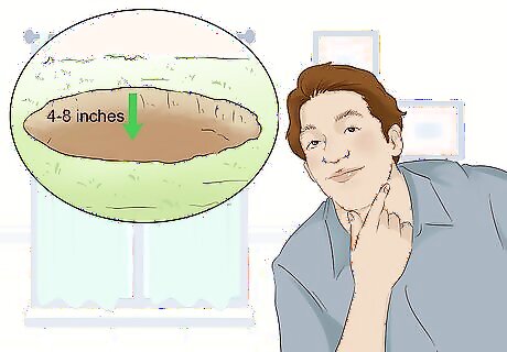 Plan your garden's depth based on its slope. Rain gardens are usually between 4-8 inches (10.2-20.3 centimeters) deep. If your location's slope is less than 4%, you'll want a rain garden between 3-5 inches (7.6-12.7 centimeters) deep. For slopes between 5-7%, create a rain garden 6-7 inches (15.3-17.8 centimeters) deep. Slopes between 8-12% will be best at about 8 inches (20.3 centimeters) deep. Rain gardens deeper than 8 inches (20.3 centimeters), or with a slope over 12%, will not be ideal. They present a tripping hazard and generally hold water for too long, becoming more of a pond than a rain garden.