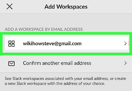 Tap your email address. It’s under the “Add a workspace by email” header.