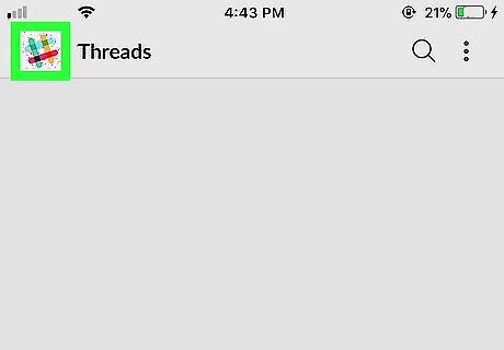 Tap the rainbow hashtag. It’s at the top-left corner of Slack.
