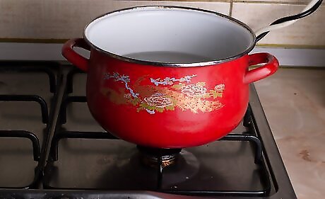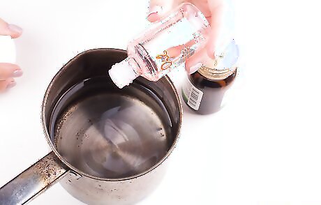 Prepare the water. Fill the kettle with clean water and bring it to a boil. Pour the boiled water into a heat safe bowl or basin. Add your essential oils to the water. Take care when pouring the water or moving the bowl. If you boil the water in the microwave, make sure to place a wooden spoon, utensil, or chopstick into the water. This prevents the water from super-heating which can cause an explosion.